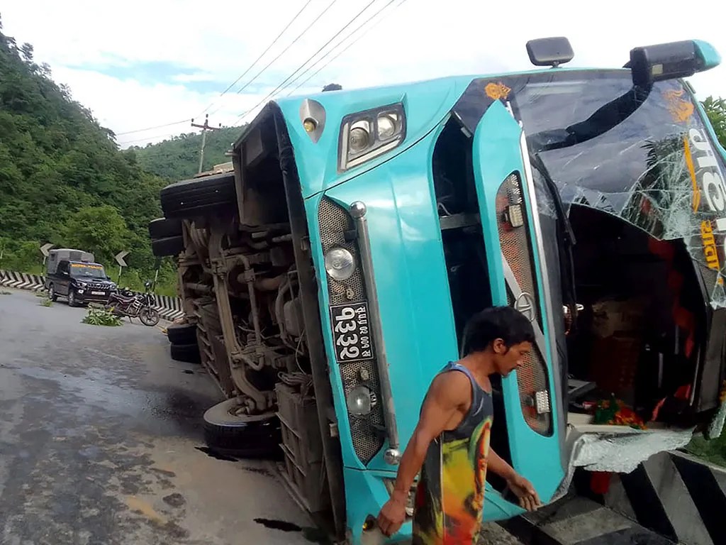 बस डिभाइडरमा ठोक्किएर दुर्घटना भएको प्रहरीको प्रारम्भिक अनुमान छ ।