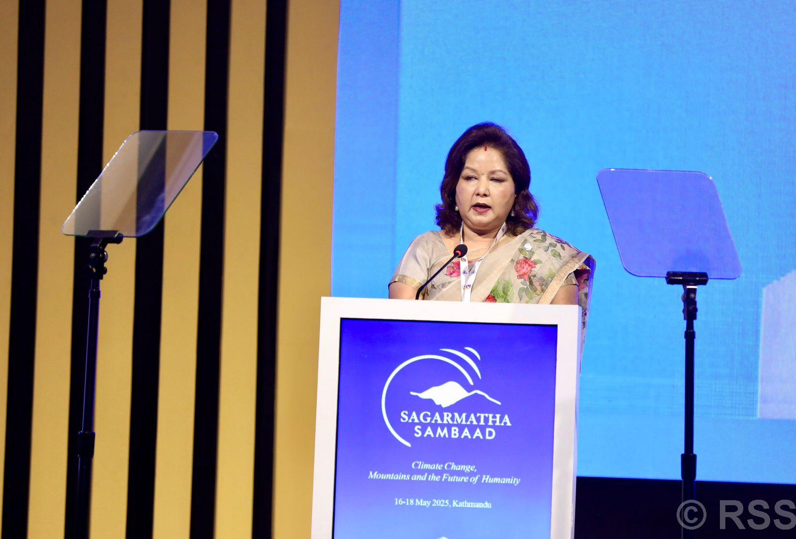 यसैगरी “जलवायु प्रेरित प्रकोपहरूले मानव अस्तित्व र जीविकोपार्जनको जगलाई नै हल्लाइरहेको छ” भन्दै उनले भनिन्, “जलवायु परिवर्तनका कारण बाढी र हिमताल विस्फोटले ठूलो विनाश भएको र खडेरी डढेलोले मानवलाई अथाह पीडा दिएको छ ।” मन्त्री राणाले यो संवाद मनन र आत्मनिरीक्षण गर्ने अवसर प्रदान गर्ने र हिमालदेखि समुद्रसम्म तथा उत्तरीदेखि दक्षिणी गोलाद्र्धसम्म जलवायुजन्य विपत्ति रोक्ने प्रयास भएको बताएकी छिन् । उनले नाजुक हिमाली पारिस्थितिक प्रणाली भएको देश नेपालले जलवायु परिवर्तनको मार खेपिरहेको जानकारी गराइन् । “हाम्रा नदी, वन र हिमालहरूको सचेत संरक्षकको रूपमा, हामीले पृथ्वीको स्वास्थ्यमा आफ्नो क्षमताभन्दा बढी योगदान गरिरहेका छौं । तर, हामी जलवायु परिवर्तनका नकारात्मक असरहरूको भारी र असमान बोझ सामना गर्न बाध्य छौँ”, मन्त्री राणाले भनिन् ।