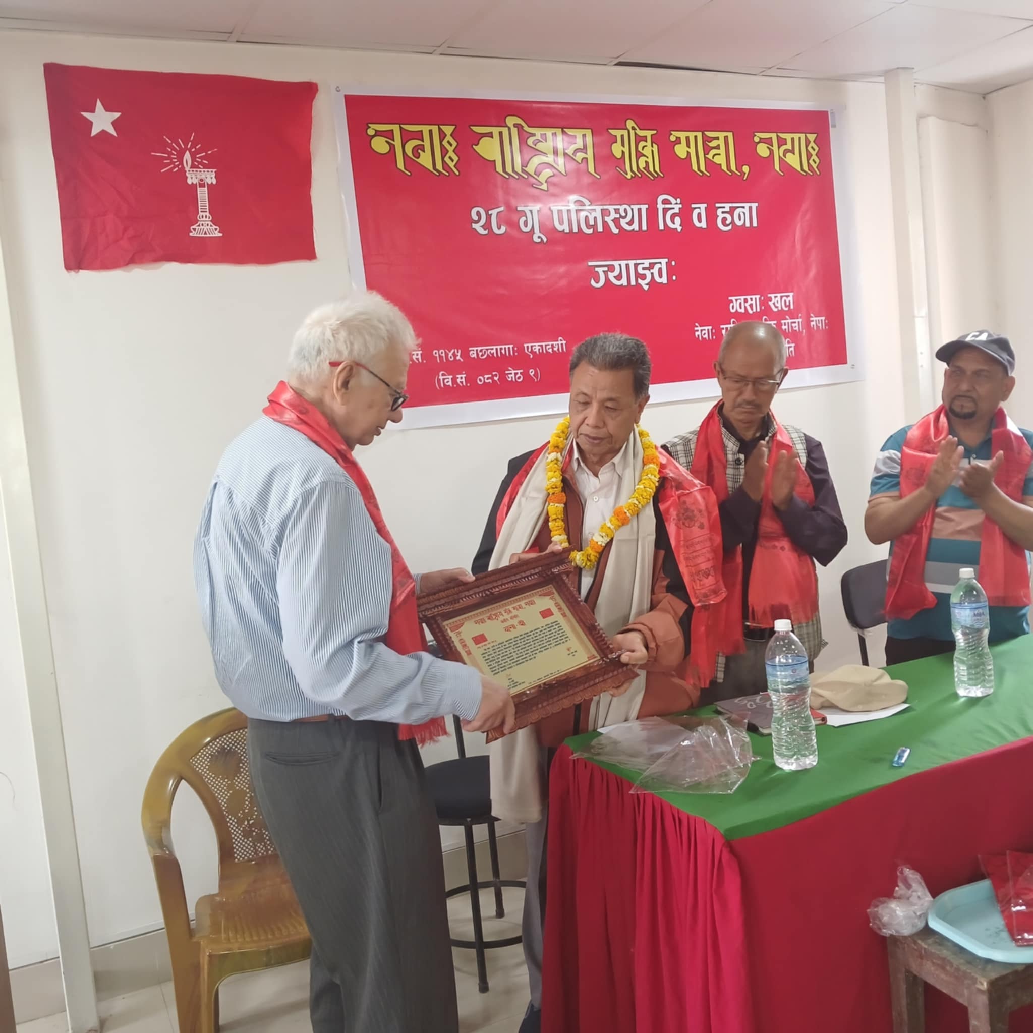 ललितपुर । नागरिक अगुवा डा. महेश मान श्रेष्ठलाई सम्मान गरेको छ । नेवाः राष्ट्रिय मुक्ति मोर्चा नेपालको २८ औं स्थापना दिवसको सन्दर्भमा उनलाई सम्मान गरेको हो ।