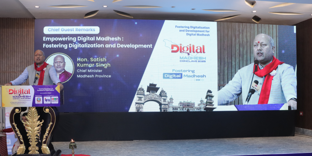कन्क्लेभलाई सम्बोधन गर्दै मधेश प्रदेशका मुख्यमन्त्री सतिश कुमार सिंहले डिजिटल प्रविधिमा मधेश प्रदेशले ठूलो सम्भावना बोकेको बताउँदै यसका लागि आवश्यक सहयोग गर्न प्रदेश सरकार तयार रहेको जानकारी दिए ।