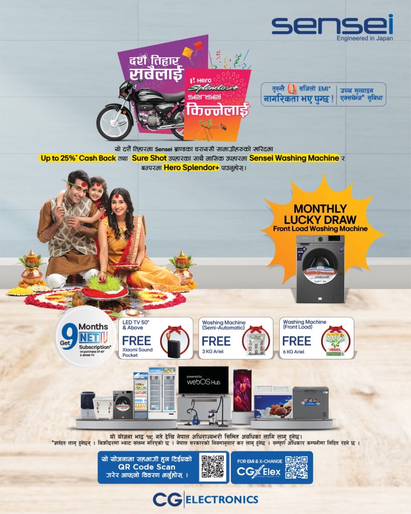 सेन्साइले हरेक चाडपर्वमा ग्राहकहरूको जीवनशैलीलाई अझ सहज, रमाइलो र आधुनिक बनाउन विशेष योजना ल्याउने परम्परा निरन्तरता दिएको छ। यसपालि पनि दशैं–तिहारमा ग्राहकले खरीदसँगै अतिरिक्त खुशी पाउनेछन्।