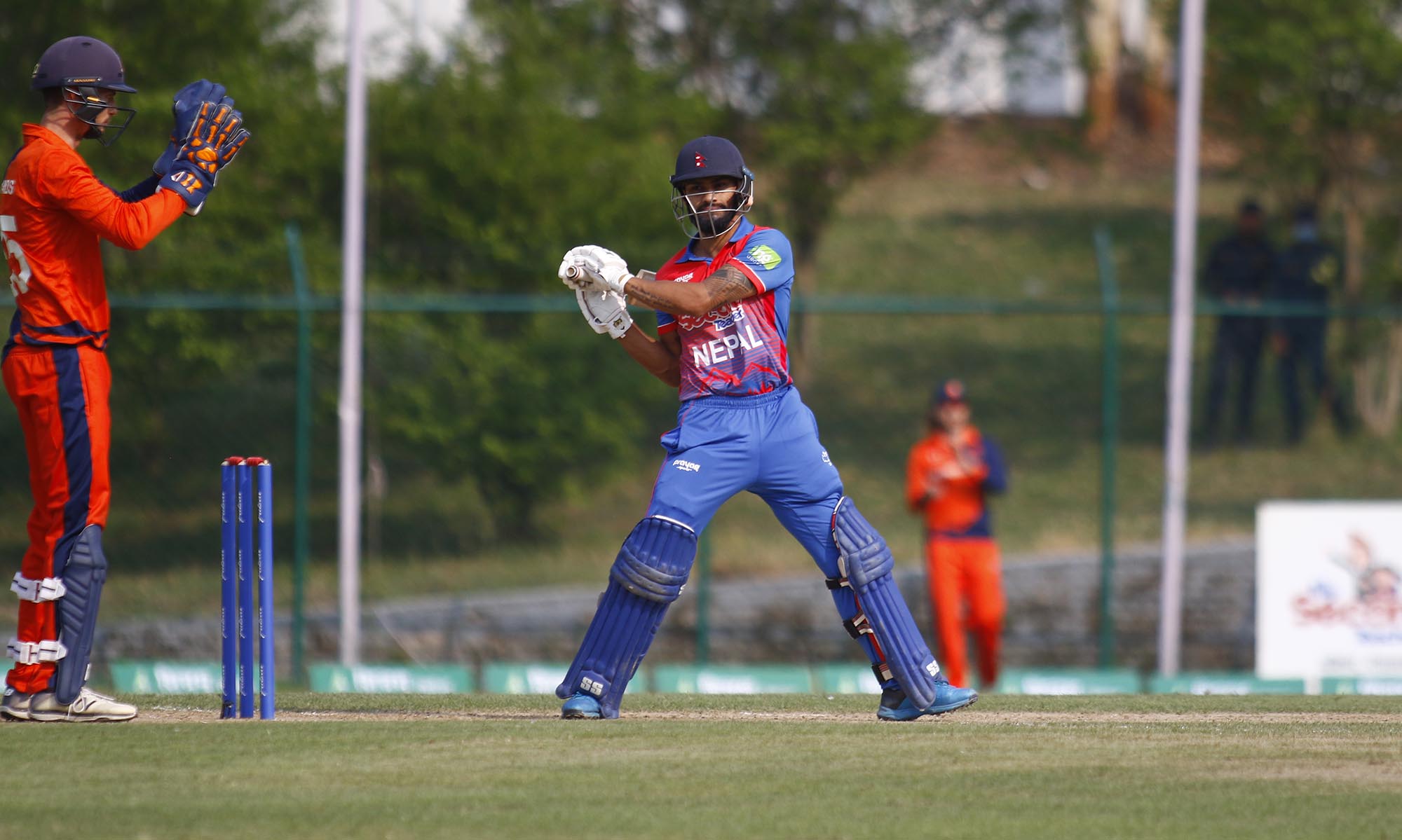नेपालले शनिबार कीर्तिपुरस्थित त्रिवि मैदानमा भएको खेलमा नेदरल्यान्ड्सलाई ९ विकेटले पराजित गरेको हो।