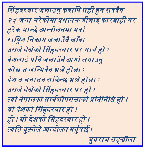 तिमीहरूको उपस्थितिमा देश जलिरहदा के गरिरहेका थियौ ?