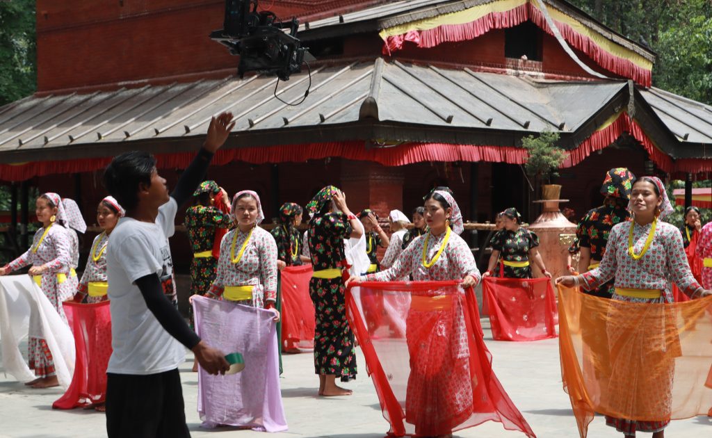 परम्परागत भेषभूषामा सजिएकी यी २ कोरस डान्सरका साथ गीतको भिडियोमा नाच्ने छन् । निर्माता रोहित अधिकारीका अनुसार गीतको मर्म र भाव जीवन्त रहोस् भनेर सुप्रसिद्ध भारतीय गायिका संजीवनी को स्वरमा यो गीत पुनः ‘माईतीघर’ फिल्मका लागि रेकर्ड गराईएको थियो । अहिले भिडियोमा पनि कहीँकतै कमजोरी नहोस् भन्नका लागि यो गीत छायांकनको लागि मात्रै ४ दिनको सेड्युल तय गरिएको निर्माता अधिकारीले बताए ।