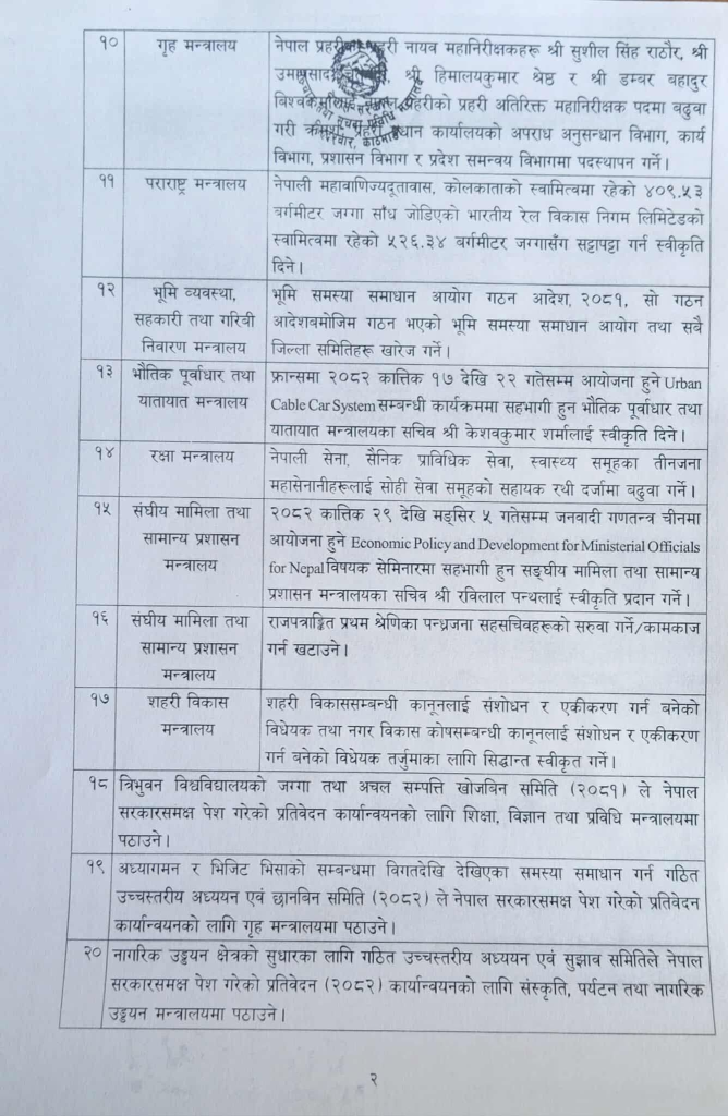 मन्त्रिपरिषद्का २० निर्णय सार्वजनिक (पूर्णपाठ)