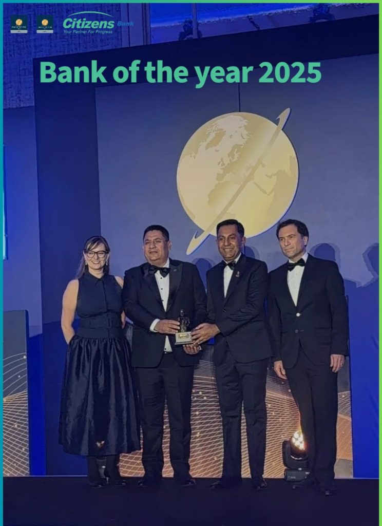 युके अवस्थित द फाइनान्सियल टाईम्सले डिसेम्वर ३, मा आयोजना गरेको एक कार्यक्रमका बीच सिटिजन्स बैंकलाई बैंक अफ द ईयर २०२५ को अवार्ड प्रदान गरेको छ । बैंक संचालक समितिका अध्यक्ष प्रवल जङ्ग पाण्डेज्यू र बैंकका प्रमुख कार्यकारी अधिकृत गणेश राज पोखरेलले संयुक्त रुपमा बैंकको प्रतिनिधित्व गर्दे बैंक अफ द ईयर २०२५ को सम्मान ग्रहण गरेका छन् ।
