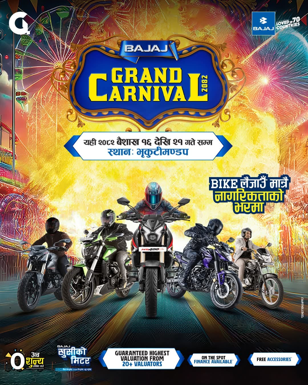 काठमाडौँ । बजाज मोटरसाइकलको आधिकारिक बिक्रेता हंसराज हुलासचन्द एण्ड कम्पनी प्रा.लि.ले ‘बजाज ग्रान्ड ...