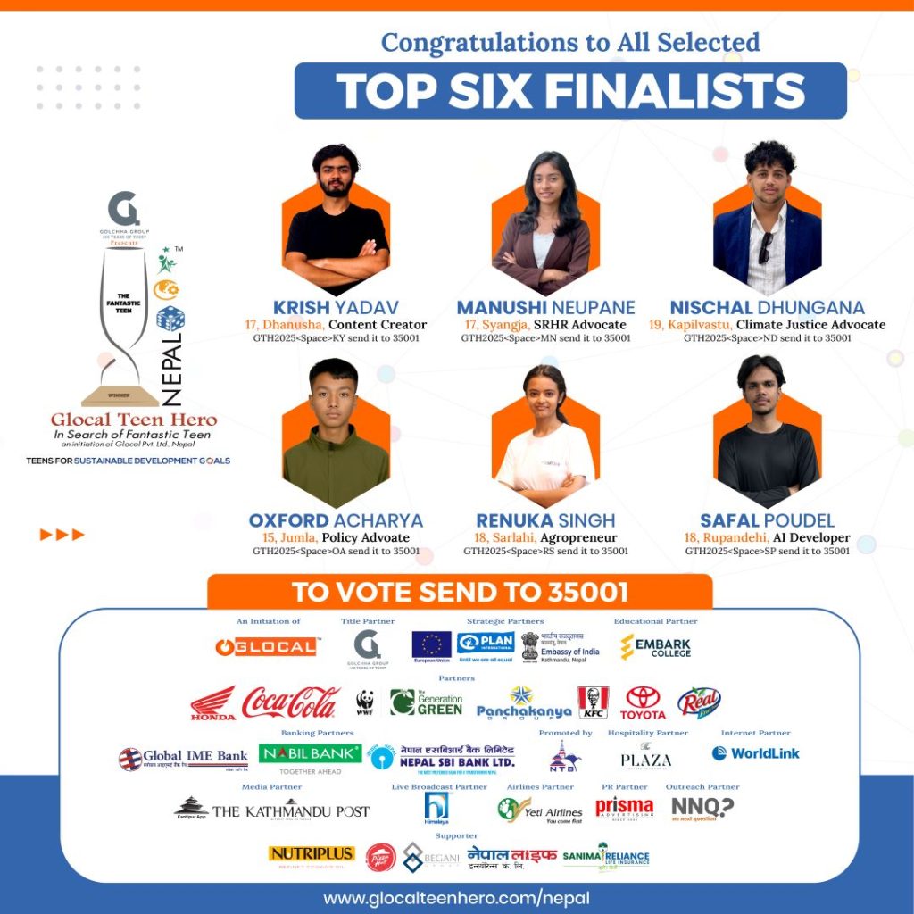 ग्लोकल टीन हिरो नेपाल ११औं संस्करणका, शीर्ष ६ फाइनलिस्टहरूको नाम घोषणा