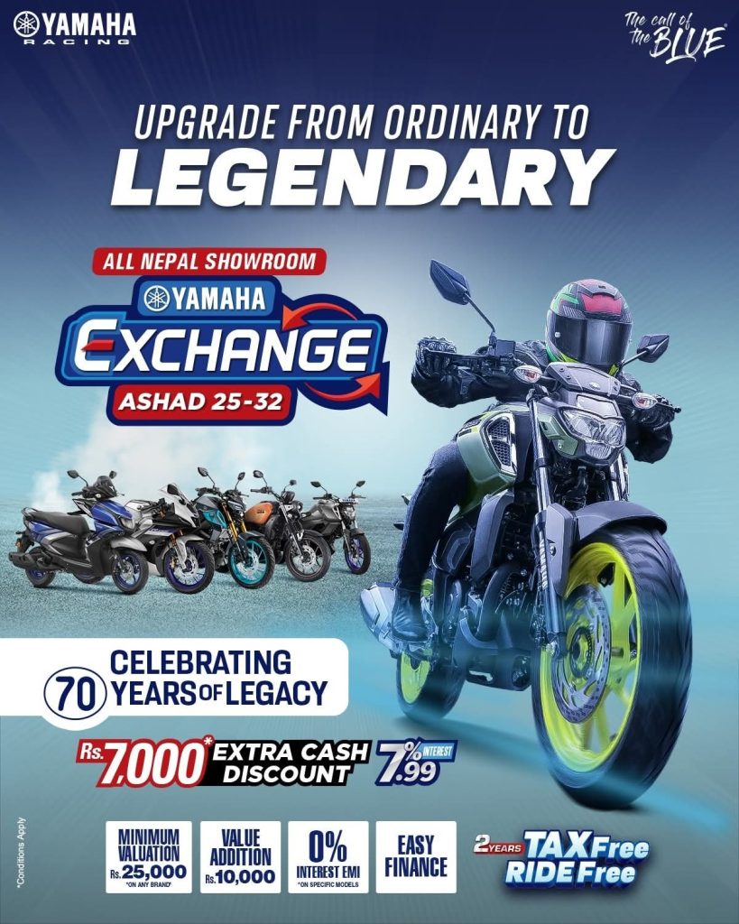 यामाहाको ७० औँ वार्षिकोत्सवमा राष्ट्रव्यापी एक्सचेन्ज अफर