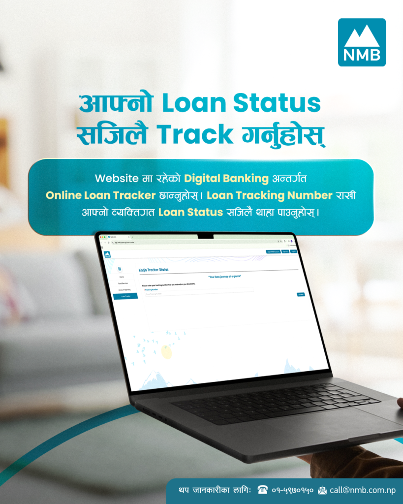एनएमबि बैंकले ल्यायो अनलाइन कर्जा ट्र्याकिङ सुविधा, ग्राहकले वास्तविक समयमा आफ्नो आवेदनकोट्र्याक गर्न सक्ने