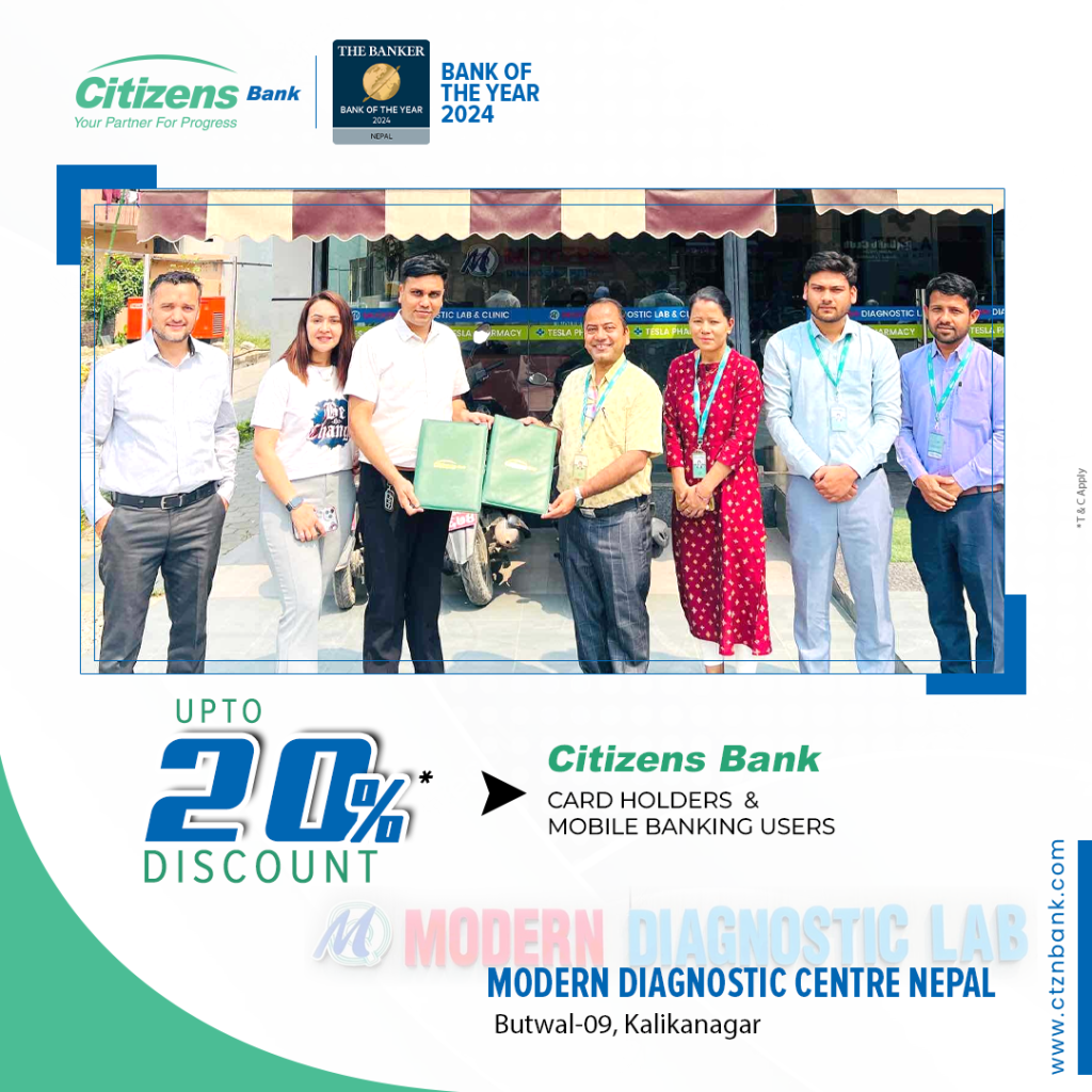 सिटिजन्स बैंक र मोर्डन डायग्नोस्टिक सेन्टर नेपाल बीच समझदारी