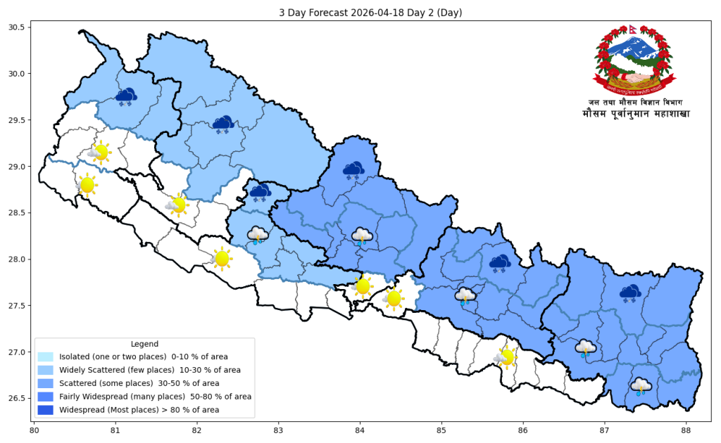 पश्चिमी र स्थानीय वायुको प्रभावः केही स्थानमा वर्षा र हिमपात, तराईमा गर्मी