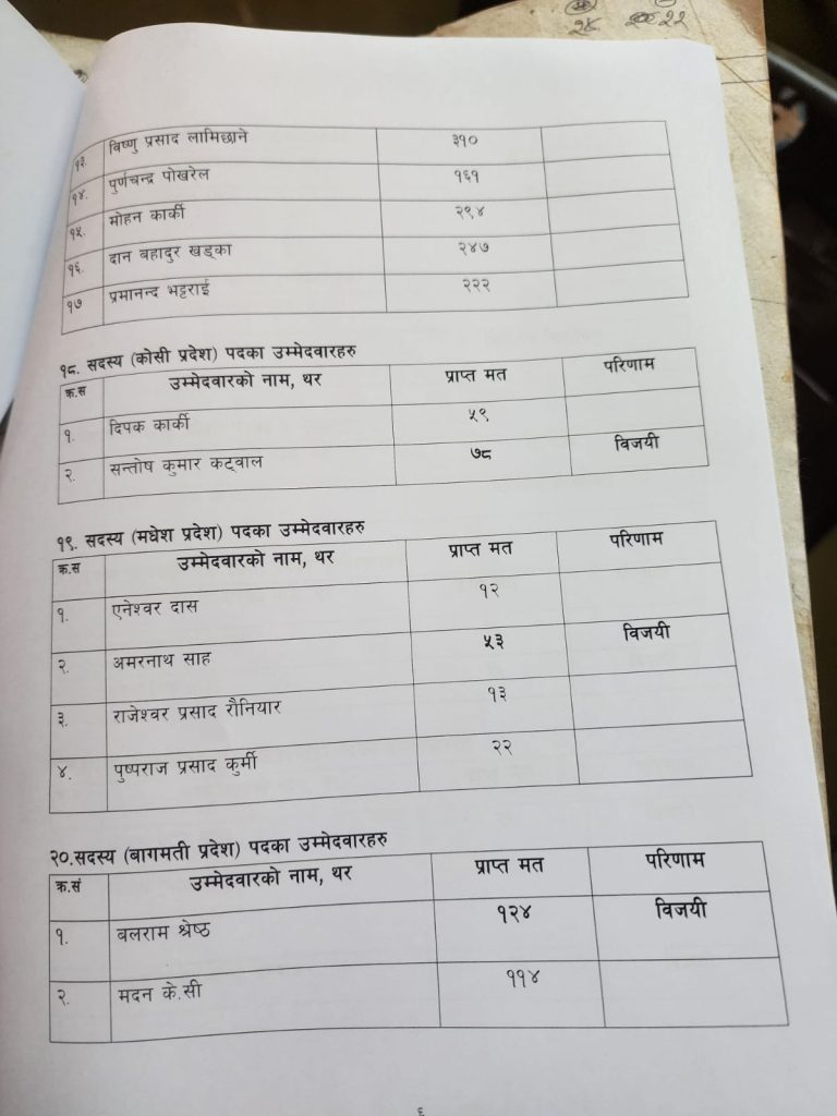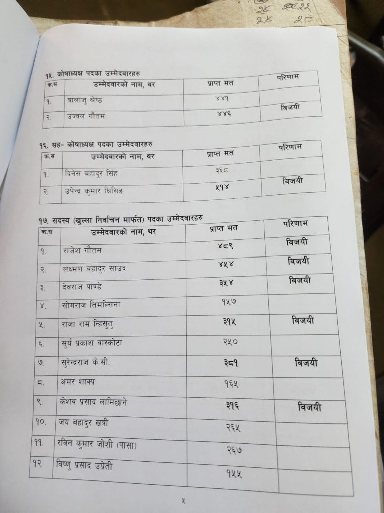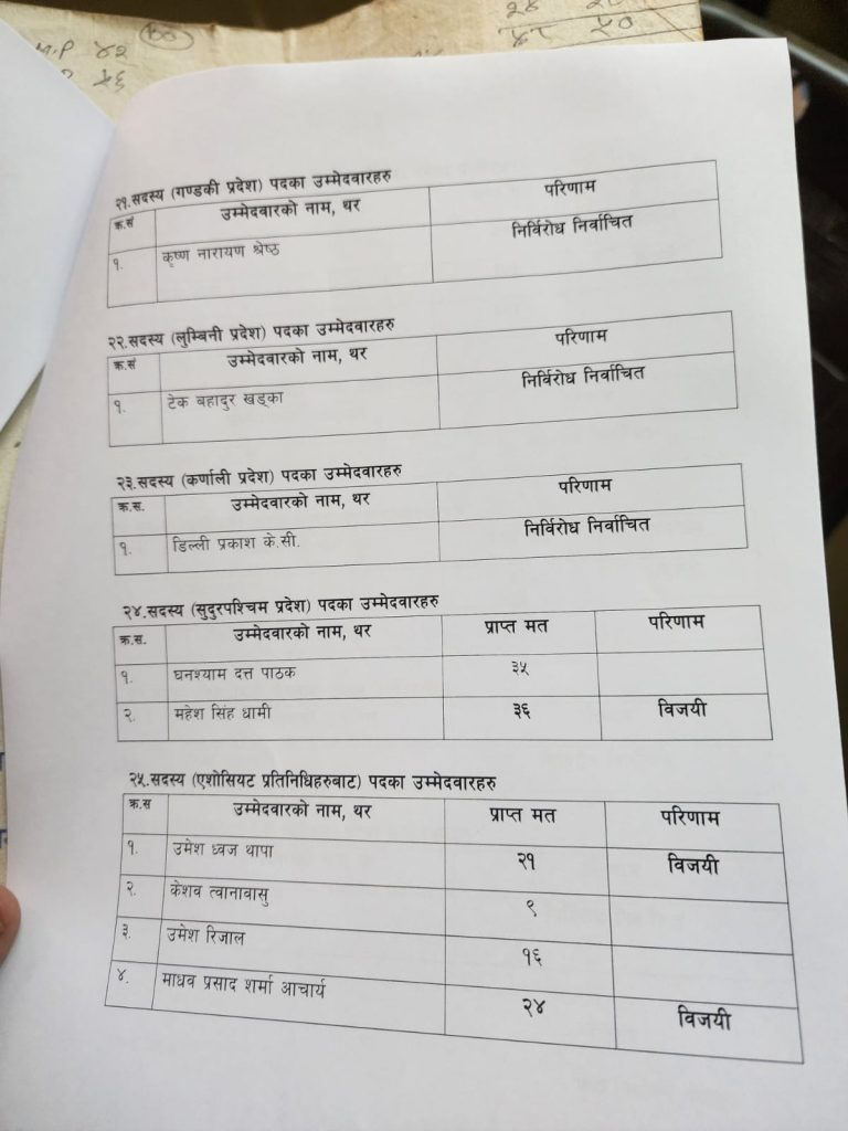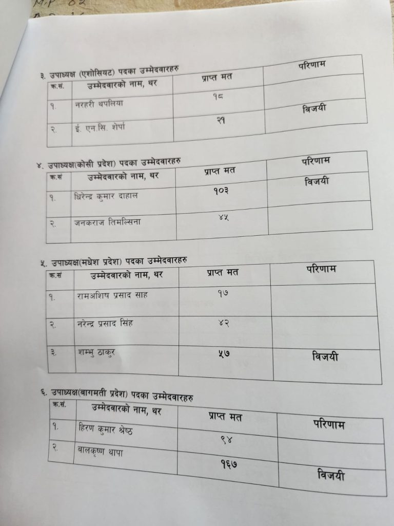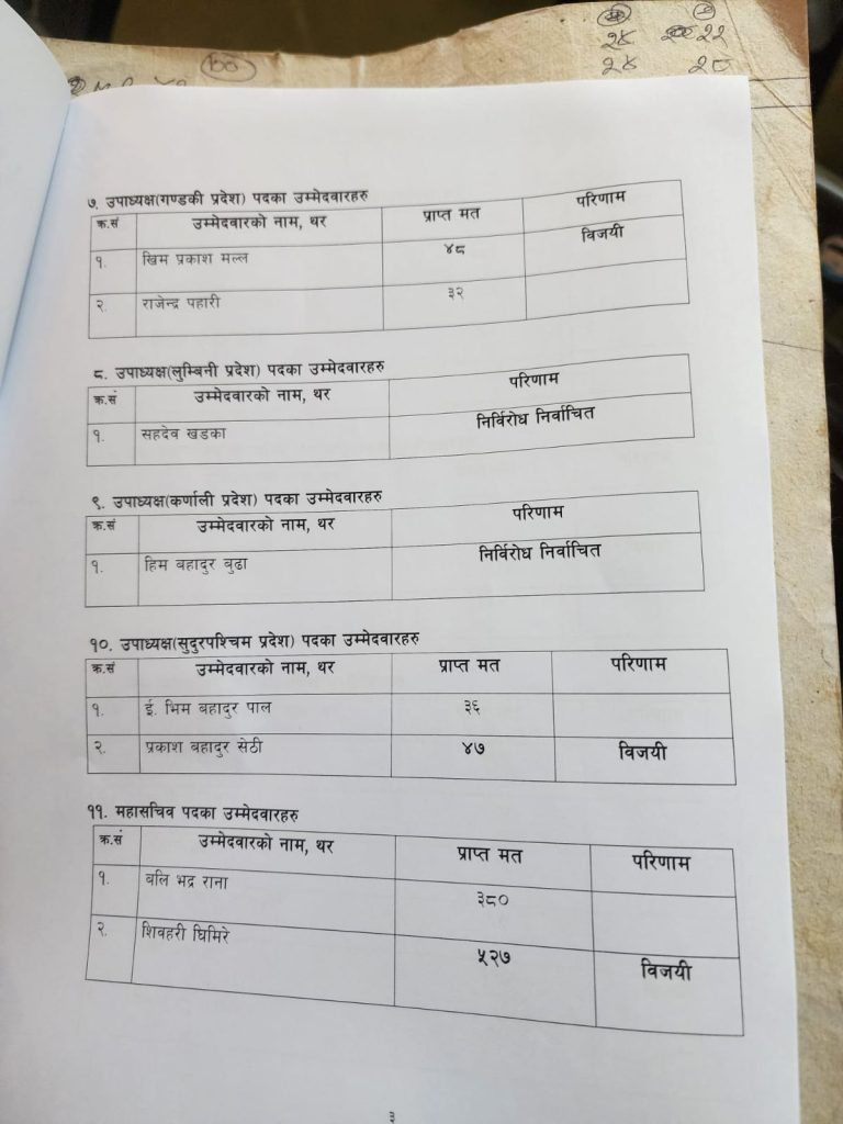 त्यसैगरी, महासचिवमा शिवहरि घिमिरे ५२७ मतसहित निर्वाचित भएका, उनले बलिभद्र रानालाई पराजित गरे । अन्य पदमा नीतिगत उपमहासचिवमा मंगल शाही र आन्तरिक उपमहासचिवमा सन्तोष शाह निर्वाचित भएका छन् ।