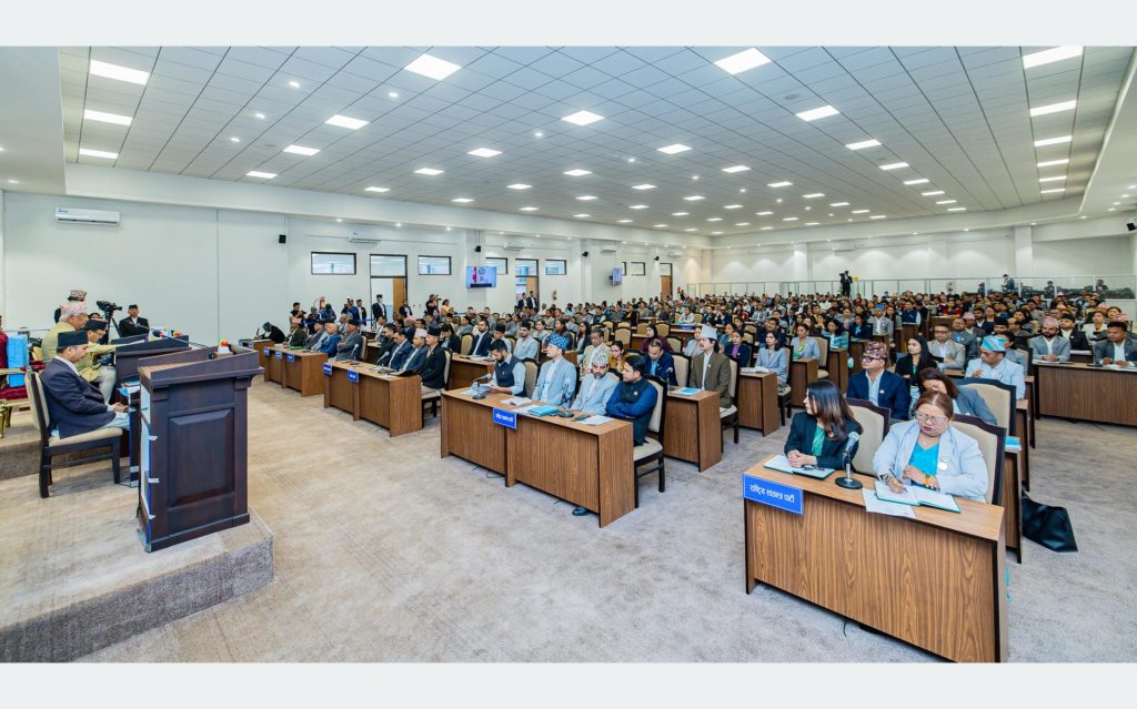 सिंहदरबारस्थित निर्माणाधीन सङ्घीय संसद् भवनमा दिउँसो सवा २ः०० बजे सुरु भएको अधिवेशनमा दलका नेताहरुबाट उठाइएको विषयबस्तु र आएका भावनाले नेपालको संसदीय अभ्यासलाई सु–संस्कृत र परिपक्व तुल्याउन सहयोग पुग्ने विश्वास गरिएको छ ।